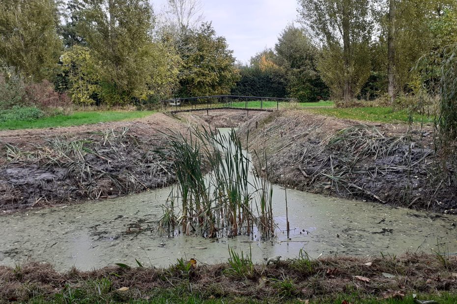 De schouw controleert jaarlijks of de sloten wel genoeg water kunnen af-en aanvoeren. Geen groen langs de walkanten. Zo ontstaat nu langzamerhand in het midden een klein eilandje. Er kwamen al zwanen, eenden, meerkoetjes en waterhoentjes kijken naar deze nieuwe nestelplek met rietsigaren, zwanenbloemen en kroos. Ze zijn welkom!